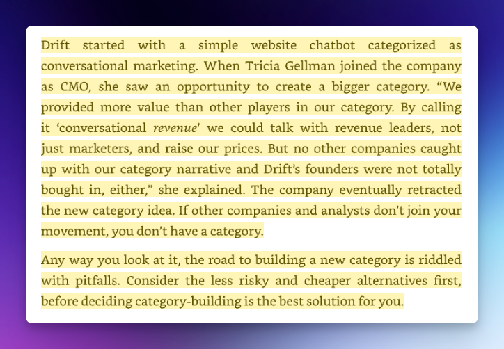 Few topics in modern marketing generate as much performative enthusiasm as “category creation.” The book leans heavily into this idea, framing it as a bold path for ambitious companies. But when stripped of rhetoric, category creation often becomes an exercise in branding jargon rather than customer value.