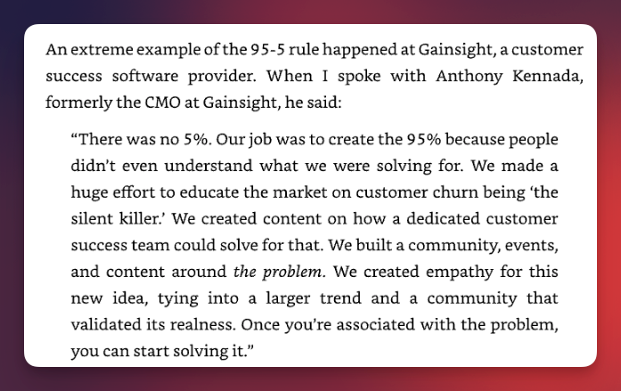 The explanation of the “95–5 rule” stands out—a recognition that most buyers are not actively in-market, and marketing must educate long before it sells. It’s one of the rare sections that acknowledges cognitive reality rather than relying on spectacle.
