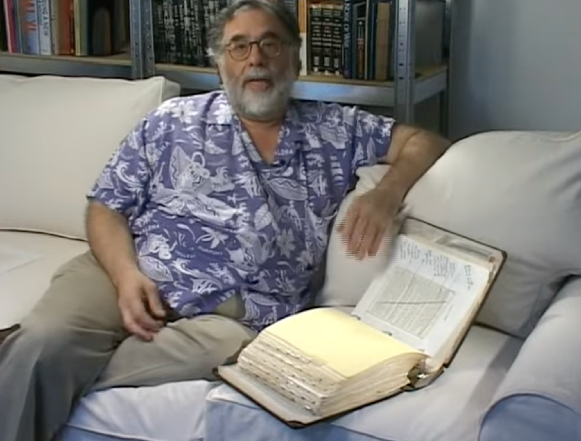 Carey has drafts of his novels “bound into what he calls ‘working notebooks,’” his personal version of a writer’s mise en place. He highlights the places in the work “where further research is necessary.” In the margins, Carey affixes “chapter plans and plot points, calendars and timelines, and occasionally pasted-in postcards—anything relevant to the story in progress.” The notebooks permit Carey to interweave his research with “his own richly invented worlds.” Because everything he needs to rewrite and revise his draft is at his fingertips.