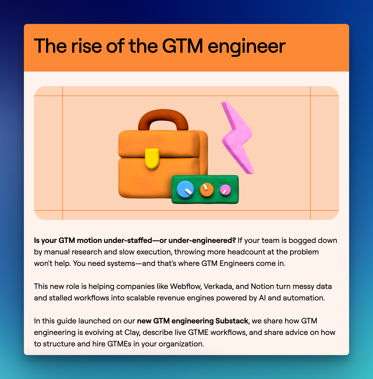 For example, take the recent trend from Clay.com with their introduction of the “GTM Engineer” role. Is this really a brand-new profession? Engineers have been solving go-to-market (GTM) challenges for years. So what makes this different now? While new problems do emerge, sometimes these roles feel like solutions to the very complexity that software products themselves have created.