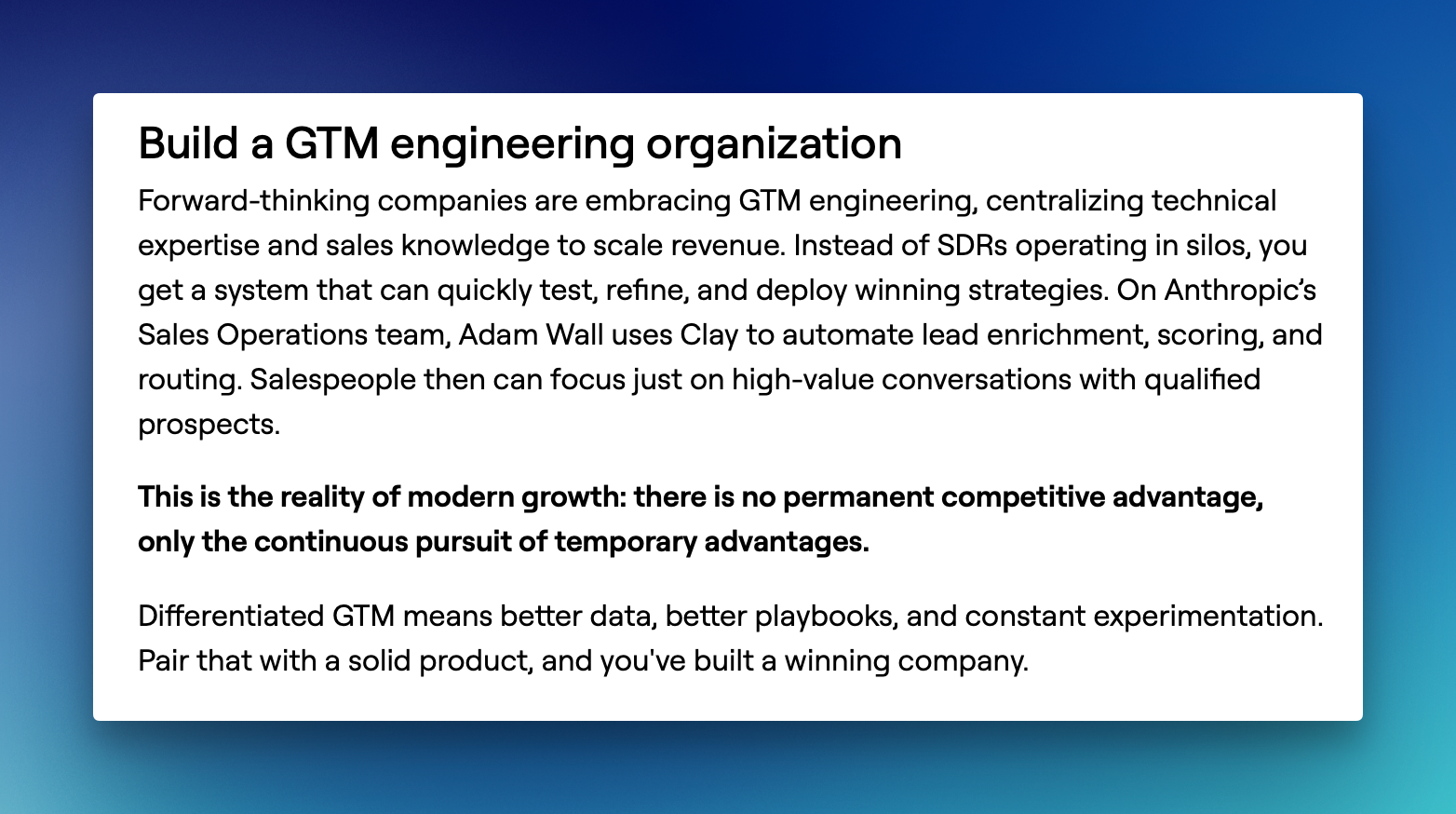 Another trend is the race to integrate with every possible app out there. Tools like Clay promise to connect with everything, from CRM to scraping to enrichment solutions and more. But do we really need all these overlapping tools? Each new platform seems to want to absorb the features of every other. And, honestly, these systems aren’t always designed to work smoothly together. While every tool touts the idea of providing a “single source of truth,” that promise is rarely realized in practice. The end result tends to be more data silos—not less—and added complexity.