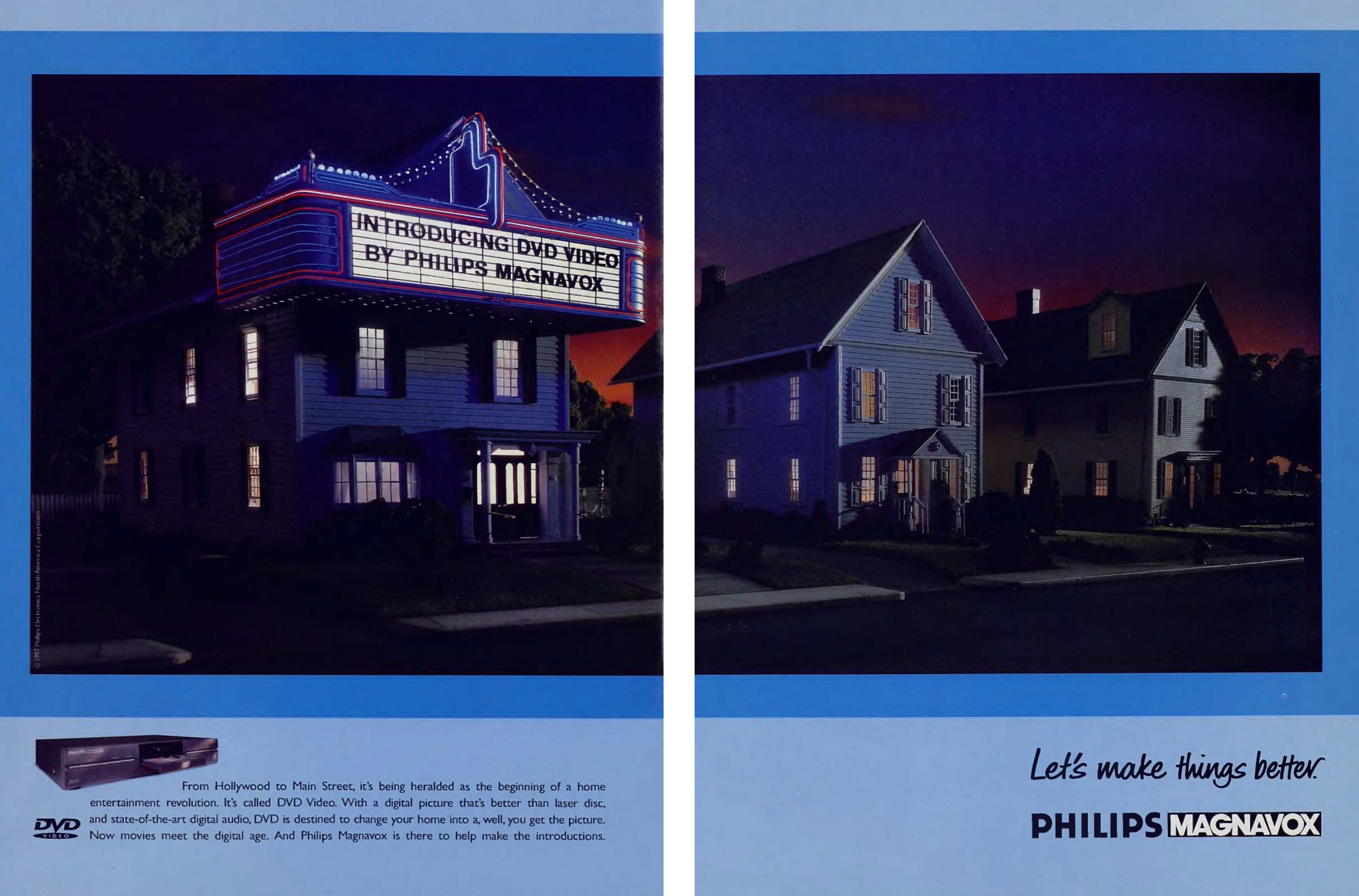 From Hollywood to Main Street, it's being heralded as the beginning of a home entertainment revolution. It's called DVD Video. With a digital picture that's better than laser disc, and state-of-the-art digital audio, DVD is destined to change your home into a, well, you get the picture. Now movies meet the digital age. And Philips Magnavox is there to help make the introductions.