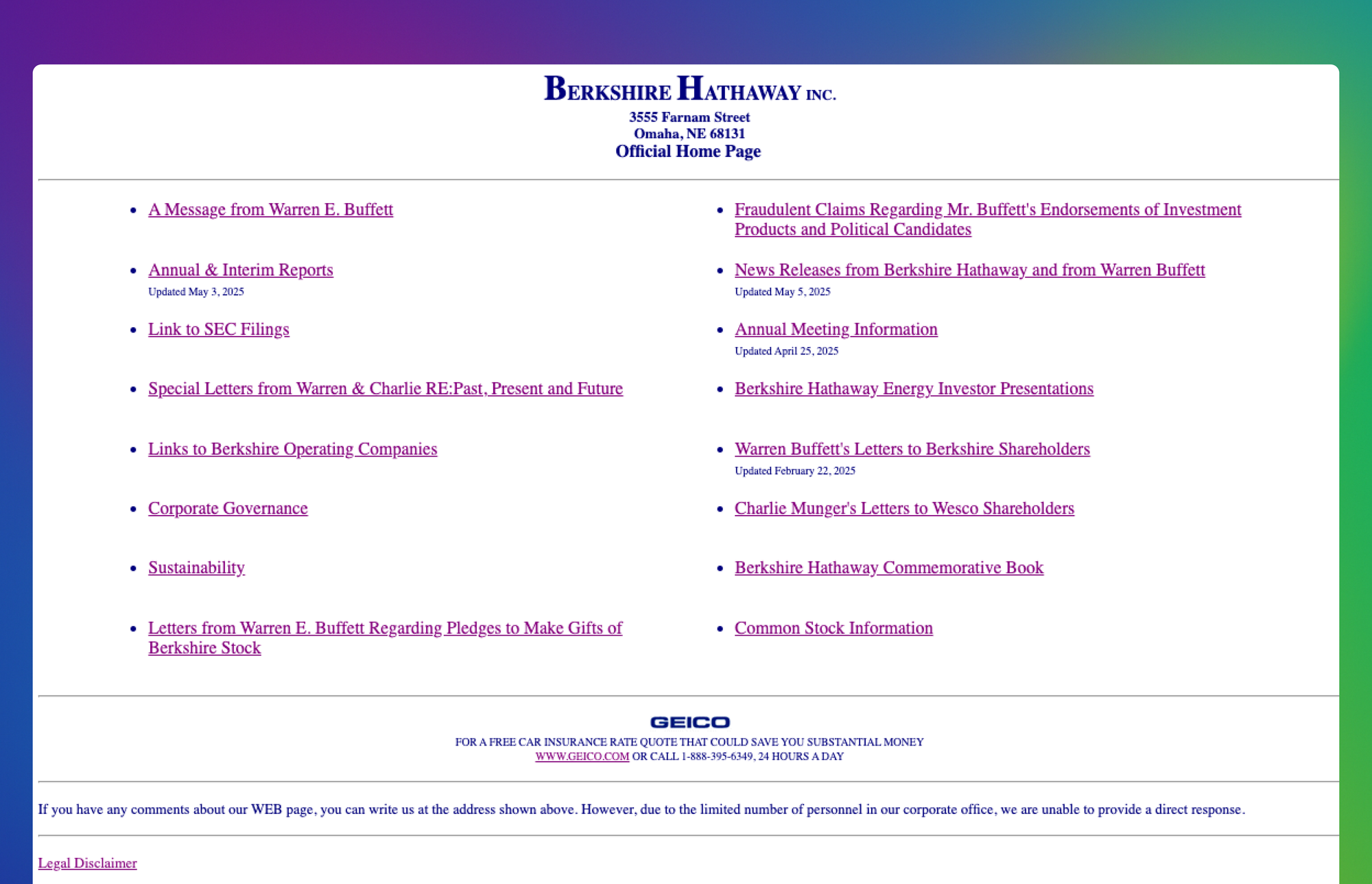 - Website: plain text, white background, about 15 links—no extra design, no fluff